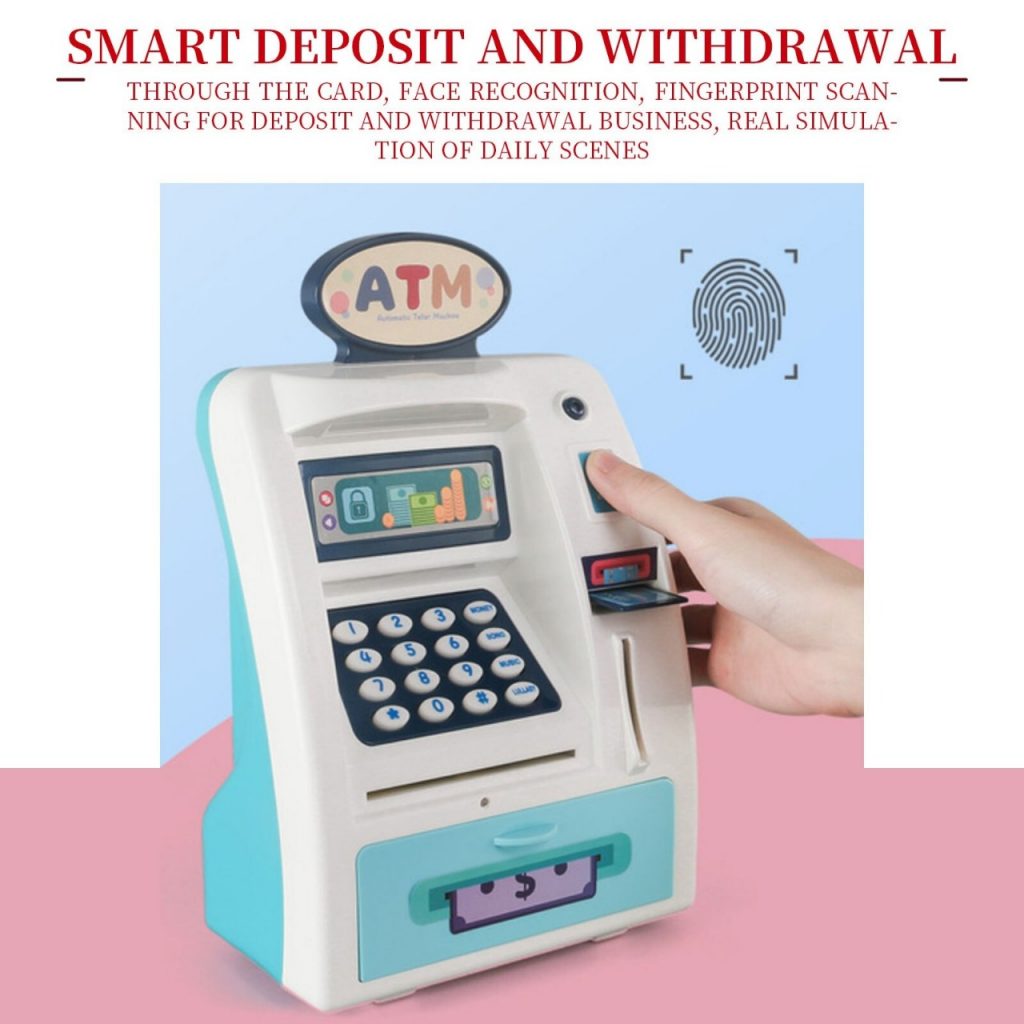 Playmaster Toys Kids atm - Real atm Piggy bank with debit card and finger print